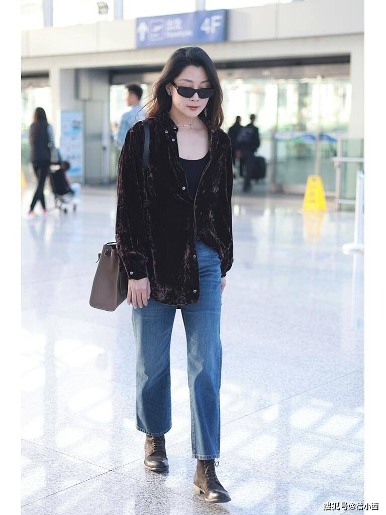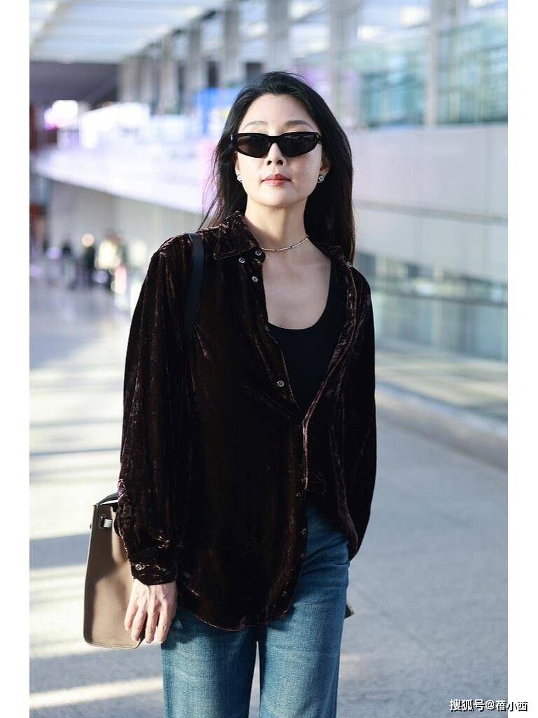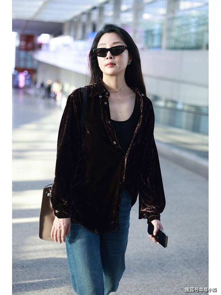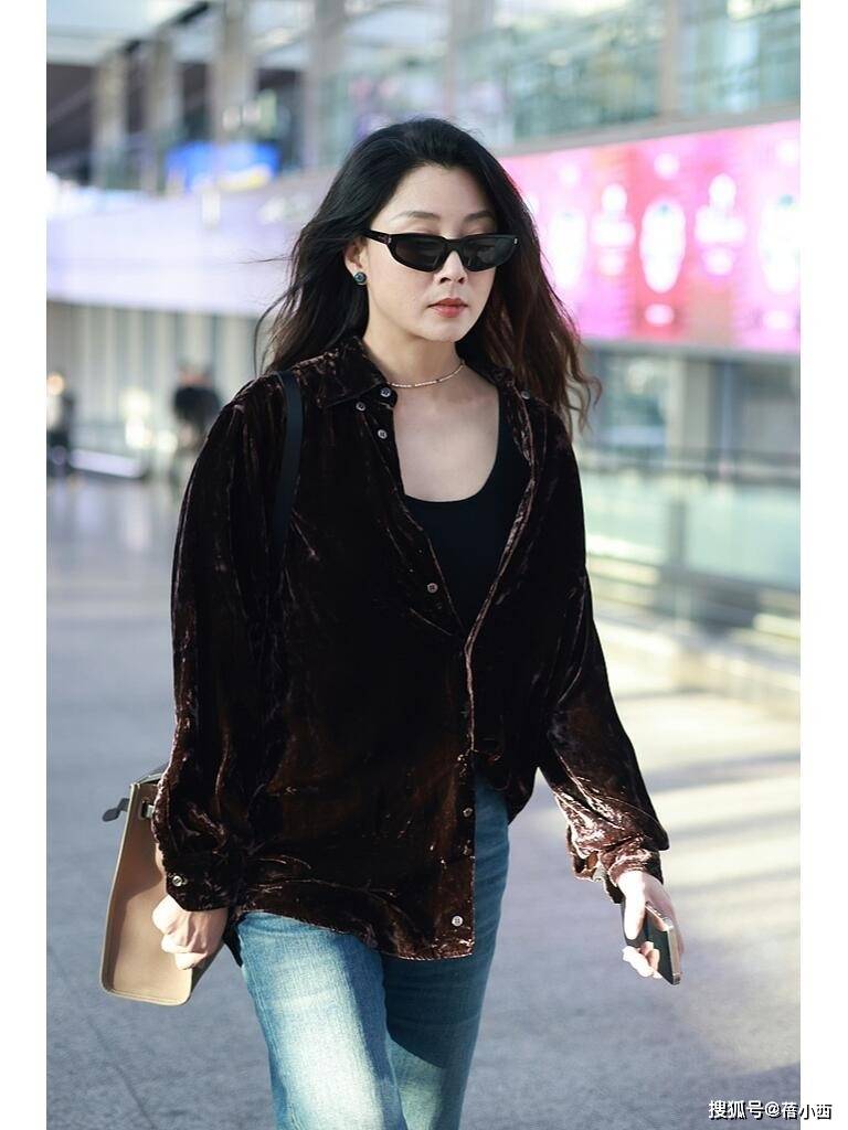 — 45岁殷桃增肥后大变样,穿丝绒衬衫走机场像少女,美得像换了个人 —