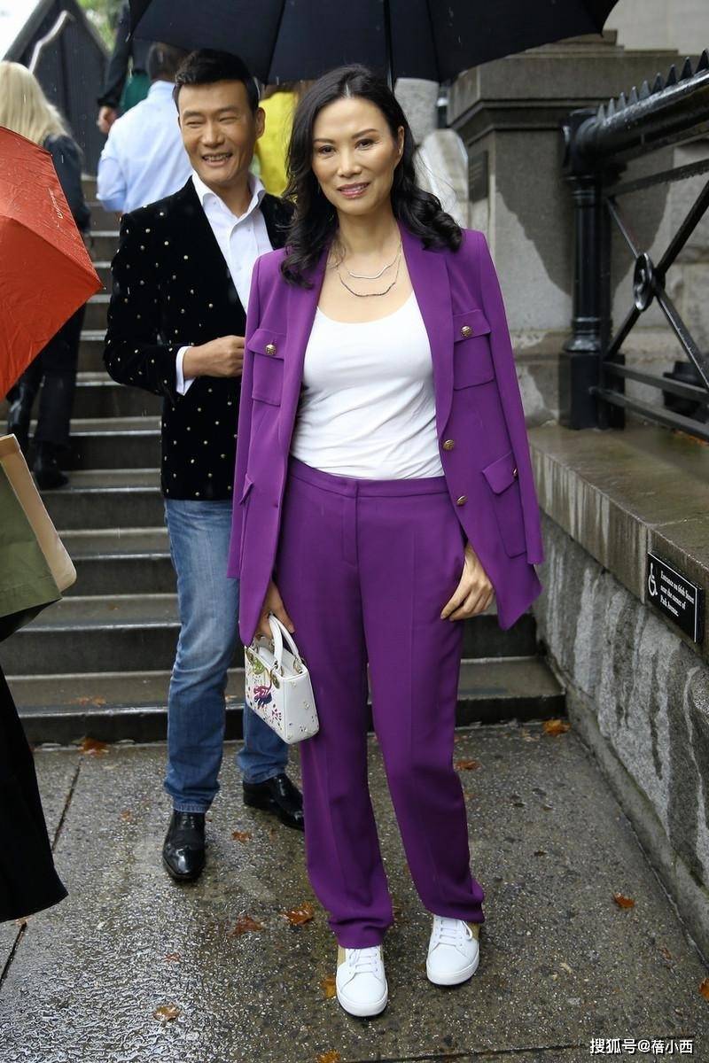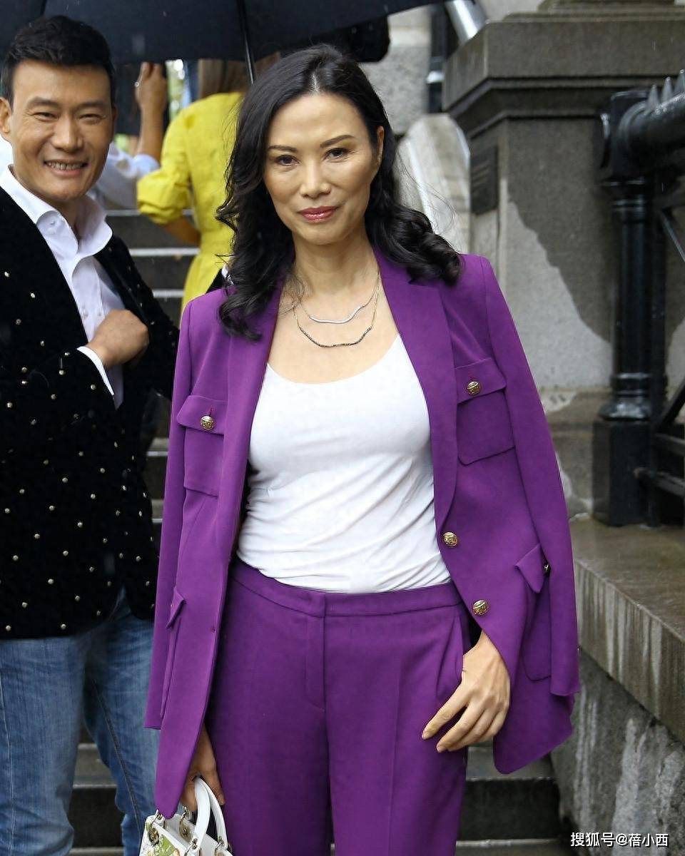 — 邓文迪把野心穿在身上!穿紫色西装+烟管裤跟男友人逛街,太高级 —