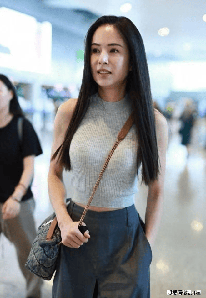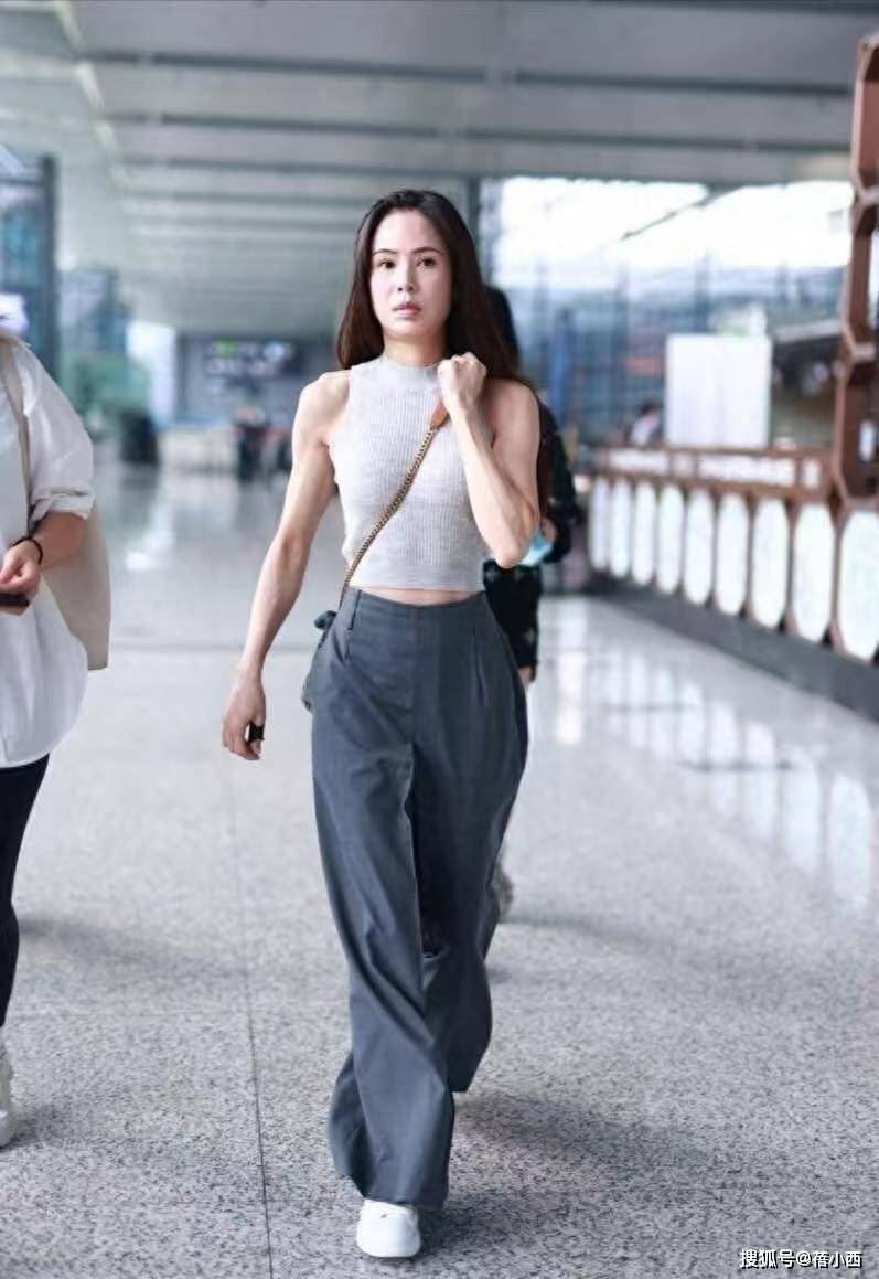 — 58岁李若彤穿无袖针织衫+阔腿裤走机场,时尚减龄,嫩得像小姑娘 —