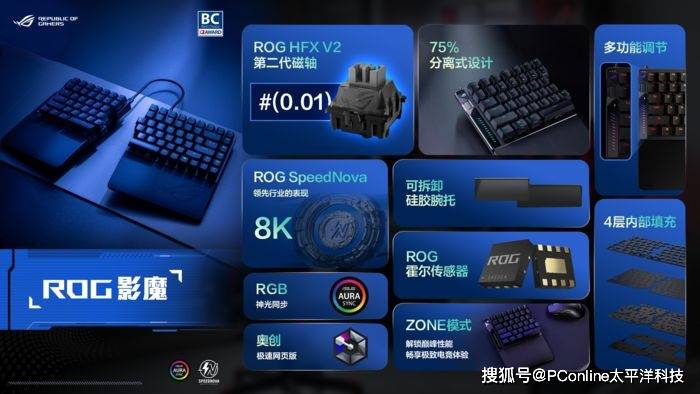 亮点:ROG HFX V2第二代磁轴,75%分离式设计
