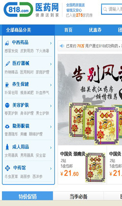 818医药网隶属上海八亿八医药信息有限公司,是技术和服务领先的“第三方医药健康类产品”信息服务平台。818医药网主要为已经取得健康产品经营资质的经销商,为有药品经营许可和通过GSP认证的药店,提供电子商务市场信息和技术服务,协助经销商和药店利用818.com电子商务服务平台向全国广大消费者提供安全便捷的网上订药、送药上门服务。在818医药网上,用户可以轻松找到全国各地知名连锁药房的信息以及其提供的各类医药健康产品的商品信息和供货资源,并可借助818.com平台所提供的市场信息,直接向药房购买所需药品,帮助药店倾听患者需求,解决老百姓“买药难,买药贵”的难题。