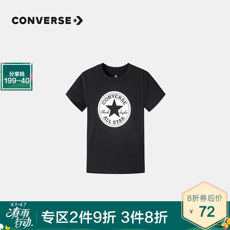 Converse 匡威儿童装男童短袖t恤夏季新款纯棉打底衫上衣大童时尚透气背心潮小女孩半袖运动T恤 正黑色-中性 150cm/(M)2150件已付款抢! -