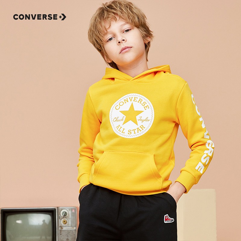 Converse 匡威儿童装 春秋季男童卫衣经典款套头上衣薄绒小女孩宽松星标运动服连帽保暖外套潮牌 学院黄-加绒 160(L)cm6171件已付款抢!