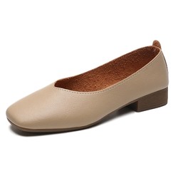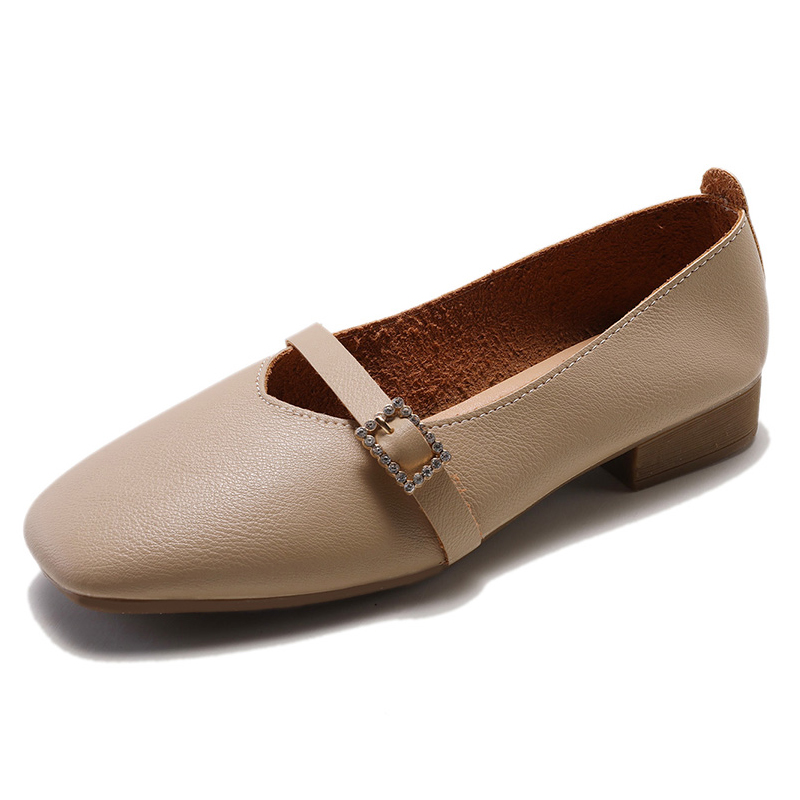 欧诗萌 软底软面粗跟鞋 奶茶色 36码