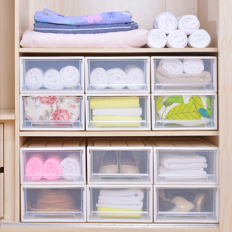 百露 塑料抽屉式收纳柜收纳柜鞋盒储物柜衣物整理箱 中号加厚单个6749件已付款抢! -