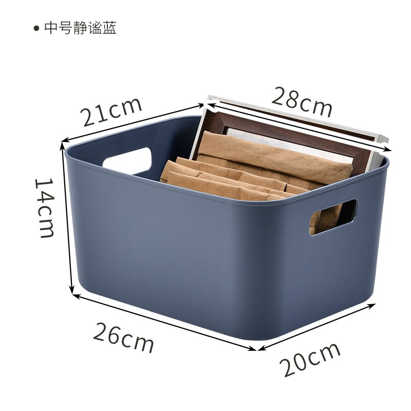 百露桌面收纳盒零食储物筐塑料化妆品家用收纳箱宿舍厨房整理盒 静谧蓝中号2605件已付款抢! -