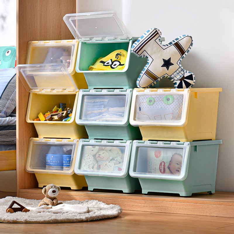 百露 储物箱子前侧开儿童零食玩具收纳箱塑料有盖透明翻盖整理箱 薄荷绿大号9223件已付款抢! -