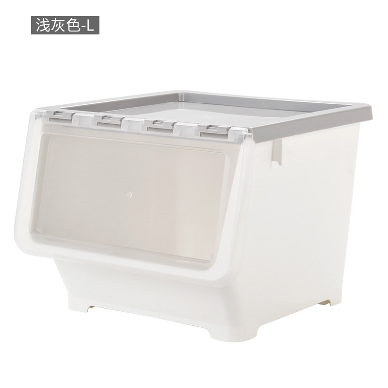 百露 储物箱子前侧开儿童零食玩具收纳箱塑料有盖透明翻盖整理箱 浅灰色大号4837件已付款抢! -