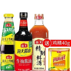 88VIP:海天 酱油+锦鲤派金标生抽+蚝油+料酒 共3.47kg13.94元 (需买2件,共27.89元包邮,返10元猫超卡后)9169件已付款抢!