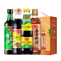 海天调味礼盒 简盐酱油 500ml+特级金标生抽 500ml+上等蚝油 520g+五香料酒 450ml *4件74.8元包邮(双重优惠)1707件已付款抢! -