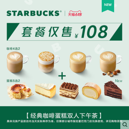 星巴克大杯经典咖啡蛋糕双人下午茶 套餐仅售108元! 阅读全文