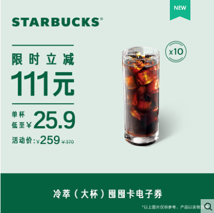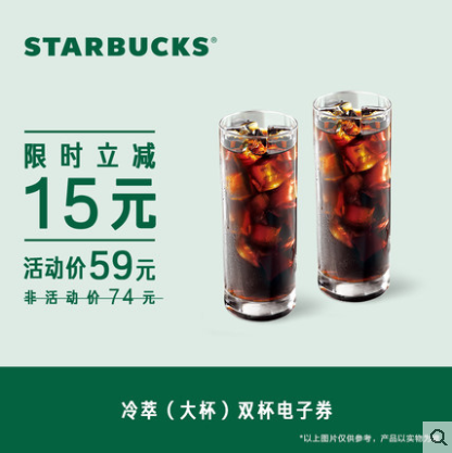 星巴克冷萃大杯双杯电子券 限时立减15元! 阅读全文