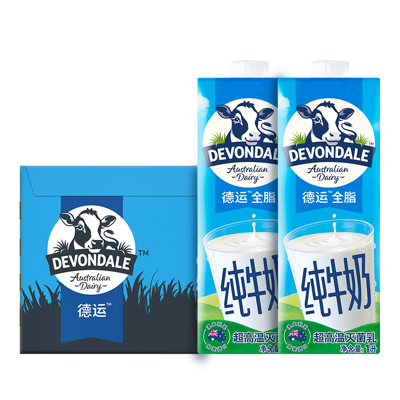 德运 (Devondale) 澳大利亚原装进口 全脂纯牛奶早餐奶1L*10盒整箱装 高钙优质乳蛋白