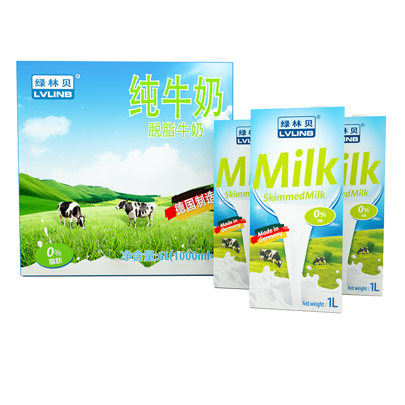 绿林贝 LVLINB 德国原装进口 超高温UHT灭菌 0脂肪 脱脂纯牛奶 生牛乳 1L*6装 进口食品