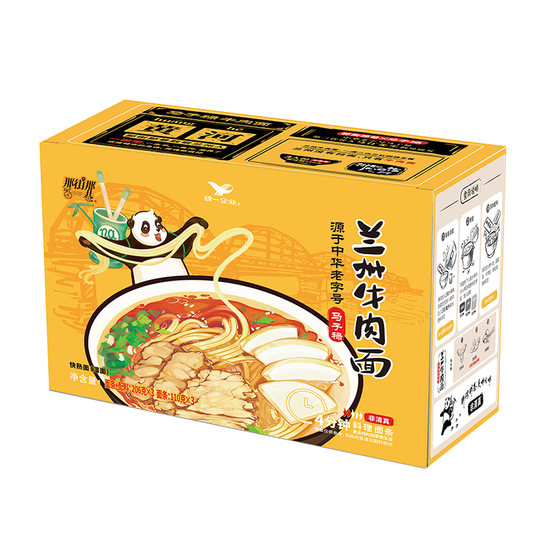 那街那巷品牌统一 集团旗下 兰州牛肉面 网红速食方便煮面非油炸汤面 206克*3份/盒