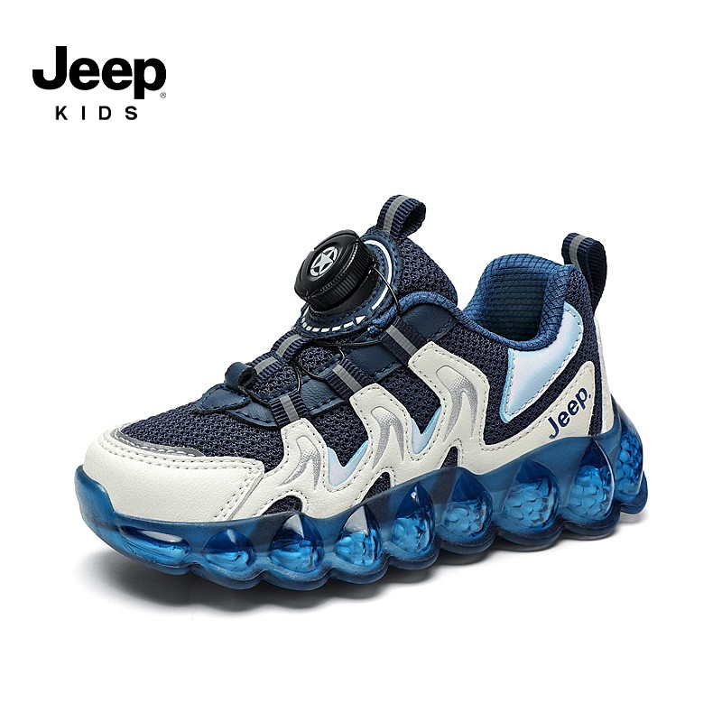 【旋转纽扣】Jeep吉普儿童运动鞋篮球鞋网面青少年跑步旋钮童鞋2022新款秋季男童鞋子 魔法蓝 30