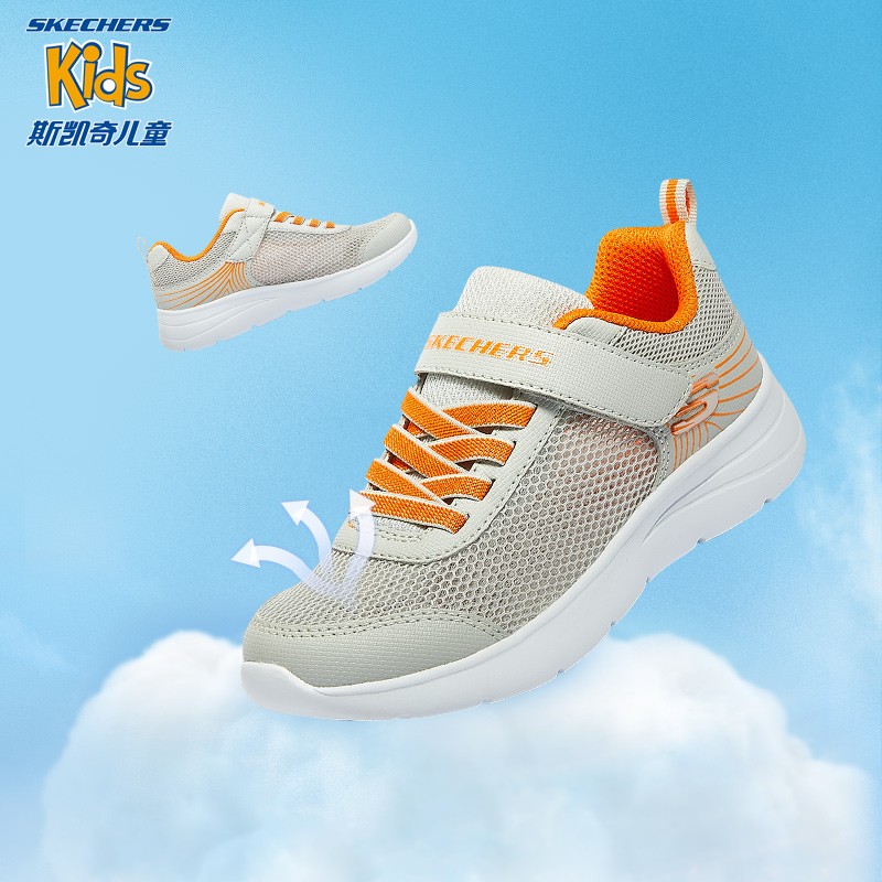Skechers斯凯奇童鞋2022新款儿童运动鞋夏季透气男女童跑步鞋中大童网鞋休闲鞋312012L 灰色/橘色/男童/GYOR 35