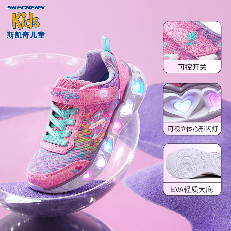 Skechers斯凯奇儿童鞋女童闪灯鞋秋季款儿童运动鞋轻质中大童休闲鞋活力女孩发光鞋302145L 粉红色/多彩色/PKMT 30