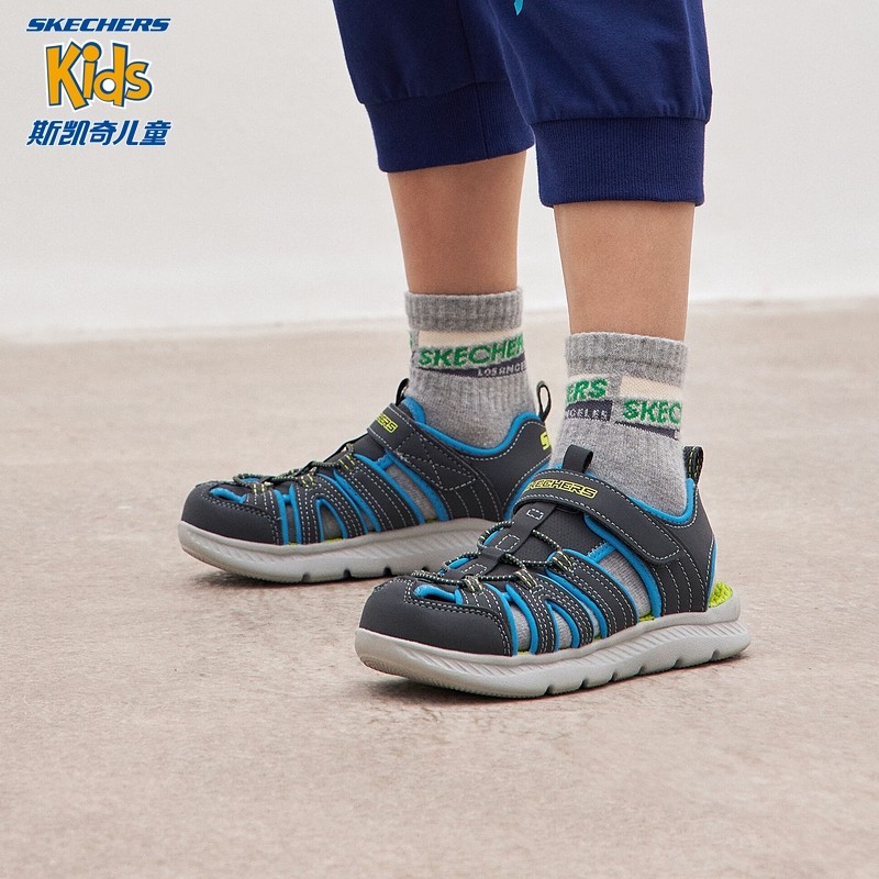 Skechers斯凯奇童鞋3-12岁男女童凉鞋夏季儿童包头凉鞋轻便防滑男童沙滩鞋400041L 炭灰色/蓝色/CCBL/男童 38