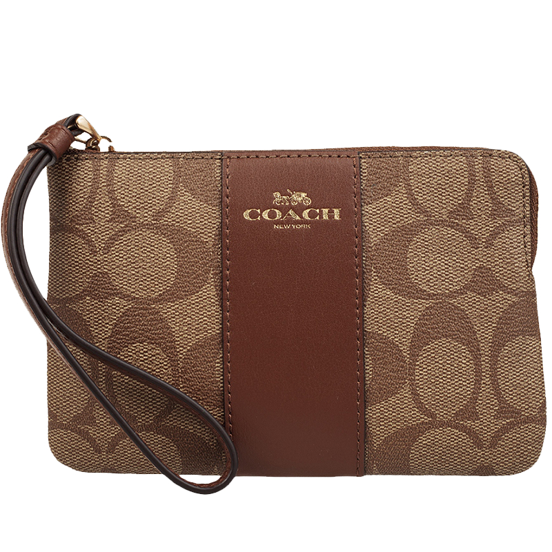 蔻驰(COACH)【官方直供】奢侈品女士小号手拿包卡其色PVC配皮F58035IME74