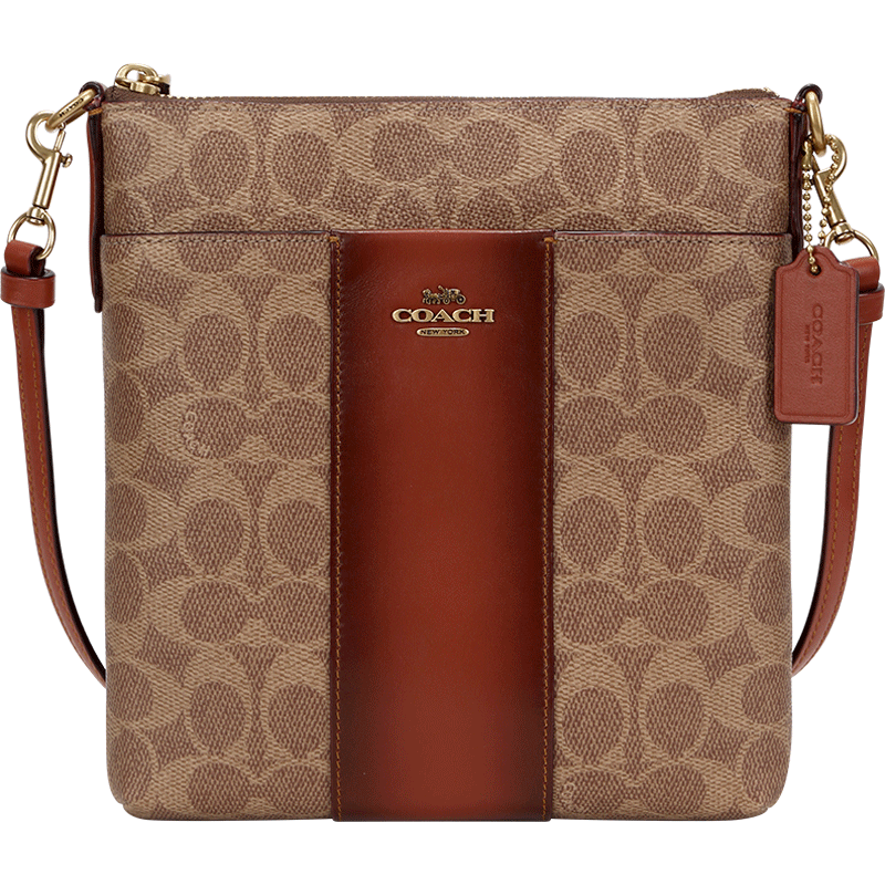 蔻驰COACH奢侈品女士风琴包单肩斜挎包卡其色拼色PVC配皮90400 IME7V【品牌授权 官方直供】