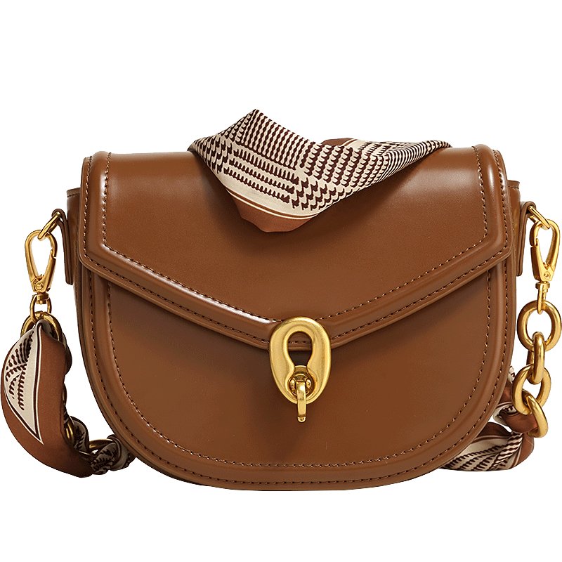 TOUTOU生日礼物女包包送女友老婆圣诞节礼物洋气百搭马鞍包丝巾链条单肩斜挎包4185马鞍棕(丝巾)