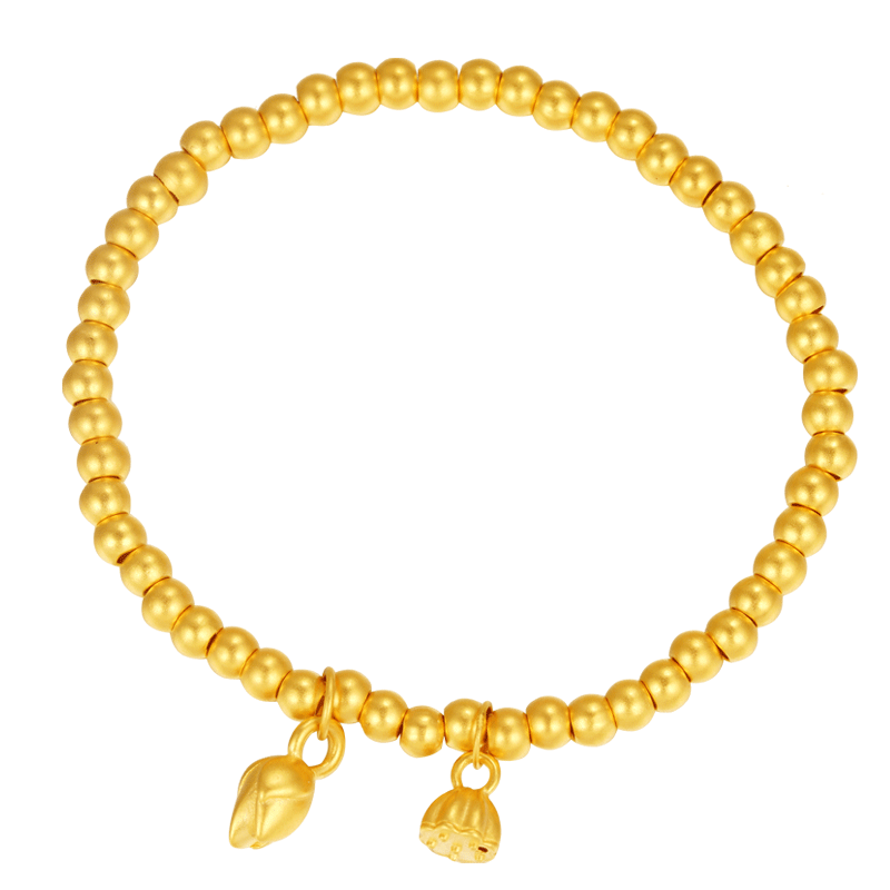 御纯金珠宝黄金手链女士款两世欢手串足金9999莲蓬荷花传承古雅金转运珠金珠子串珠 约11.50g(珠直径约4mm)实重多退少补