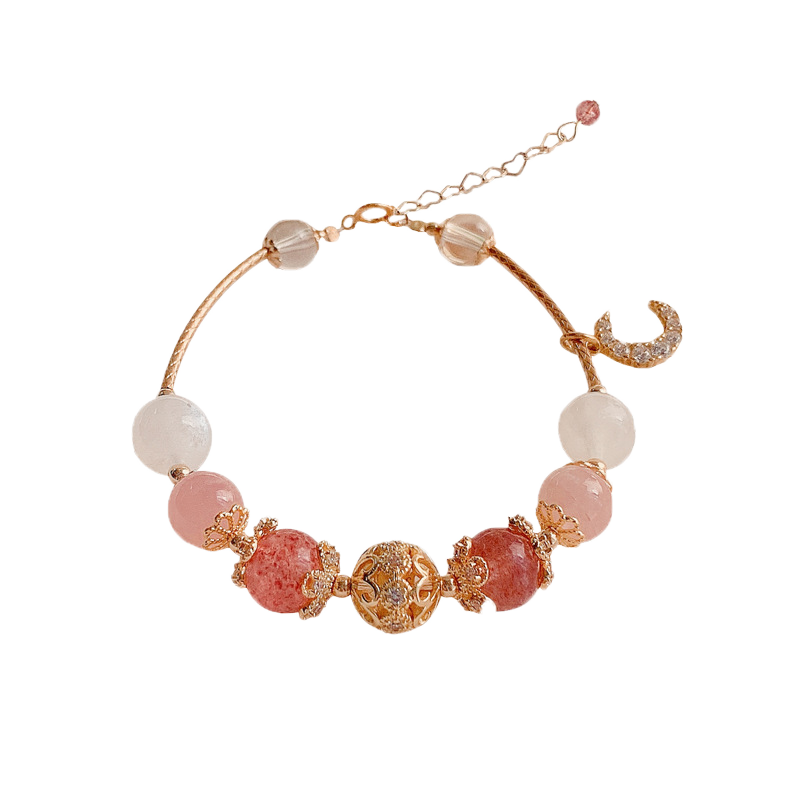 蒂卡世琦 粉晶紫晶手链水晶女淡水珍珠锆石14K包金可调节弹性复古ins设计甜美 粉晶手串(JJ01450-21013) 手工制品