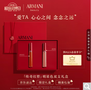 阿玛尼(ARMANI)「520限定」红管唇釉双支装礼盒 烂番茄红#405+暧昧奶杏#214 口红情人节限定520礼物送女友 【520限定礼盒】盲选不出错,送TA真正心动的礼物