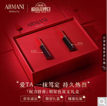 阿玛尼(ARMANI)「520限定」权力唇膏双支装礼盒 权能番茄#405+自在豆沙#504 口红情人节限定520礼物送女友 入会购正装至高奢享5件告白礼
