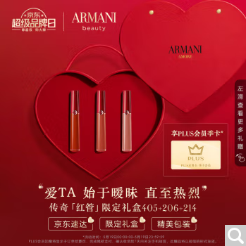 阿玛尼(ARMANI)「520爱心限定」红管唇釉三支装礼盒 经典三色#405+#206+#214 口红情人节限定520礼物送女友 口红情人节限定520礼物送女友