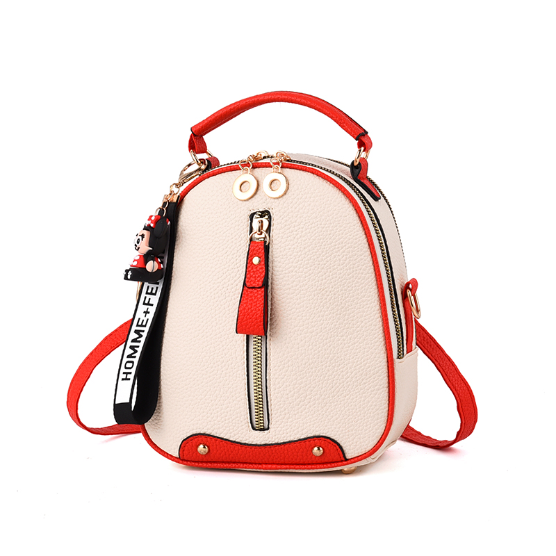 时尚有范,多用背包,做工精细时尚,一包三用,百搭随意,多样随心!包包精致小巧的外观:既然是随身携带的包包,大小就要得宜,一般建议以18cm×18cm以内的尺寸最为恰当,侧面要有些宽度,才能放进所有的物品,又能放进随身的大包包里而不显笨重。轻便的材质:材质的重量也是必须考虑的因素,愈轻巧的材质,愈不会造成携带上的负担,布料与塑料布制作的化妆包最为轻巧方便。此外,外皮最好选择耐磨耐操的质材,不要有过多的缀饰,才能用得长长久久。
