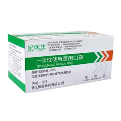 纪医生 一次性医用口罩 独立包装 50只 8.9元包邮(需用券)