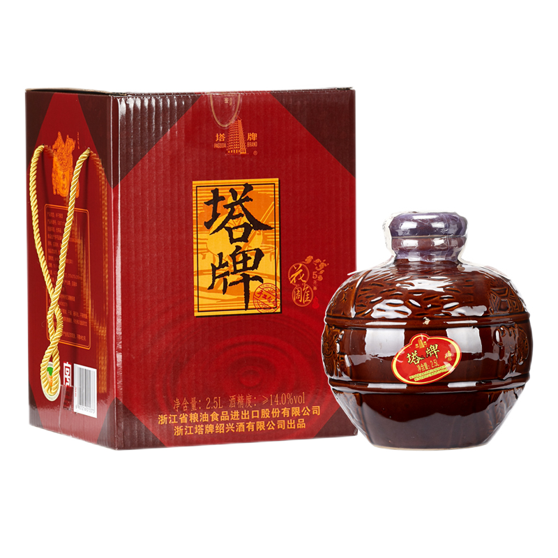 塔牌 绍兴黄酒 绍兴元红 手工黄酒 干型黄酒 糯米酿 2.5L 坛装礼盒