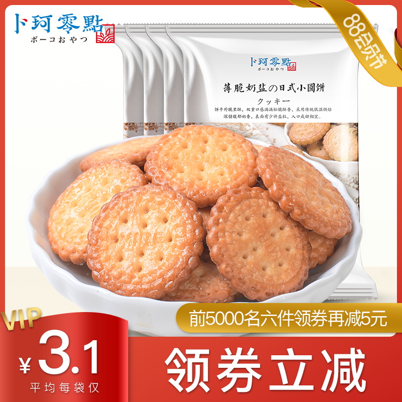 卜珂零点日本海盐饼干植物油饼干天日盐饼干奶盐味小圆饼休闲零食 6.5元