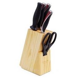 此套德世朗悦动六件套,包含1件木质底座:无涂层,易于清洗。1件切菜刀:适用于肉类、蔬菜、水果等较软食物的切配。1件砍骨刀:刀身较厚,可用于砍猪肋骨、剁鸡等较硬的食物。1件水果刀:适用于水果的切片和削皮。还配有厨房剪和磨刀棒。一套6件,方便好用。DESLON 德世朗 YD-TZ002-6A 悦动六件套 厨房刀具组合 红色,页面有1件五折优惠券。