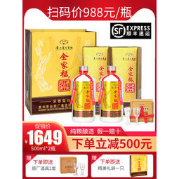 取优质糯高粱(产量高且品质优的地域性常规高粱新品种—红缨子高粱)、小麦、水为原料,利用茅台镇当地得天独厚的自然环境,采用原窖分层堆糟工艺酿制,再经贮存、精心勾调而成,酒色清澈透明,具有浓香特点,芳香浓郁,绵柔甘冽,窖香优雅,绵甜爽净,尾净香长等特点。天猫全家福旗舰店1649元,下单立减500元,可领1000元优惠券,实付149元到手。 阅读全文