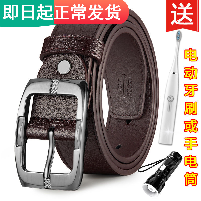 牛皮商务中年男士裤带韩版潮休闲腰带男青年针扣真皮军训学生皮带 15.8元