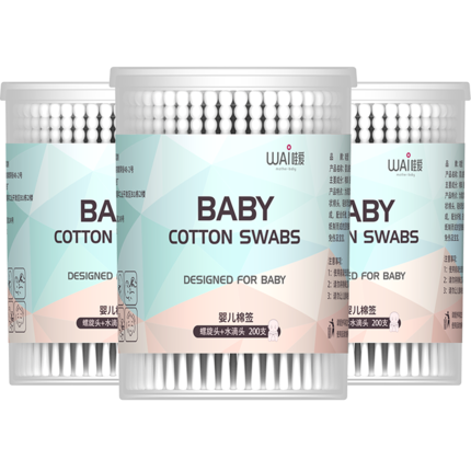 【3罐600支装】月销4万+,30万好评!!哇爱婴幼儿双头棉签,纸轴非木棒,螺旋型棉头+水滴型棉头,方便好用,不含荧光剂,不掉絮,不松脱,无异味,适合宝宝的棉签【赠运费险】 阅读全文