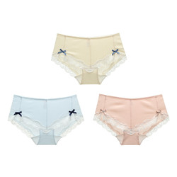 六只兔子3条装女士内裤性感中腰无痕提臀三角裤蕾丝透气甜美学生 39.9元