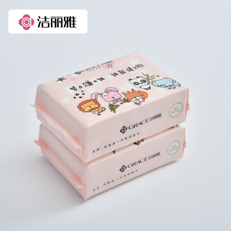 洁丽雅(Grace)一次性洗脸巾加厚加大干湿两用抽取式男女家用美容卸妆无添加剂吸水棉柔巾 兔几加厚1包装【50片/包】