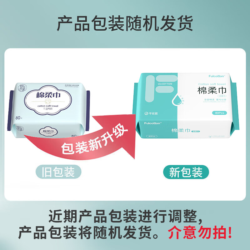 棉柔世家(FulCotton)一次性洗脸巾 婴儿干湿两用擦洗屁屁抽取式平纹擦脸巾 平纹80抽*6包