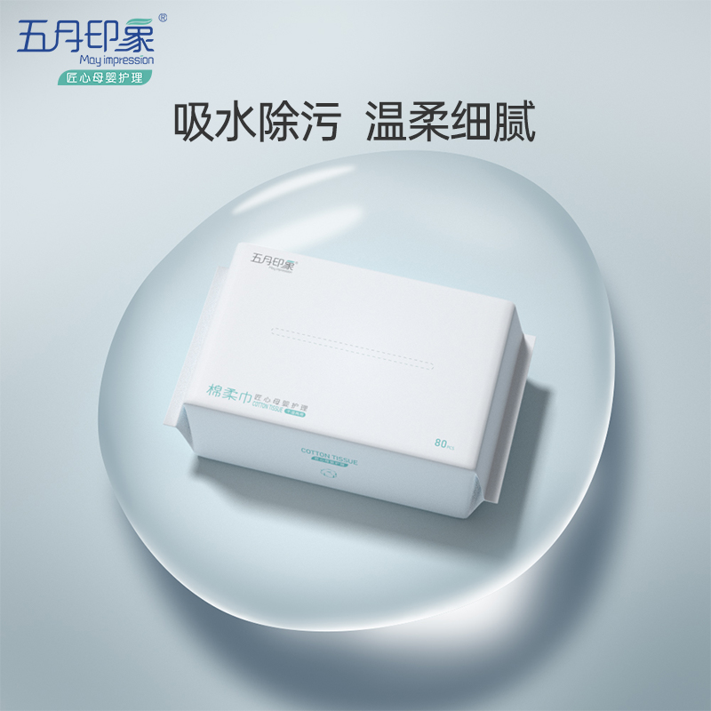 五月印象may impression 棉柔巾 一次性洗脸巾 干湿两用抽纸巾 婴儿手口洁面洗脸巾 80抽*6包/提