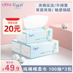 白菜价:七度空间 若颜初纯棉棉柔巾 100抽*3包 4.95元