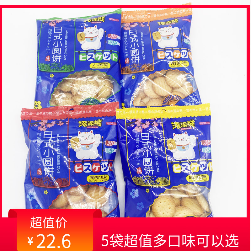 派派熊网红日式小圆饼干5袋装日本海盐小圆饼日盐饼干奶盐味零食 22.6元