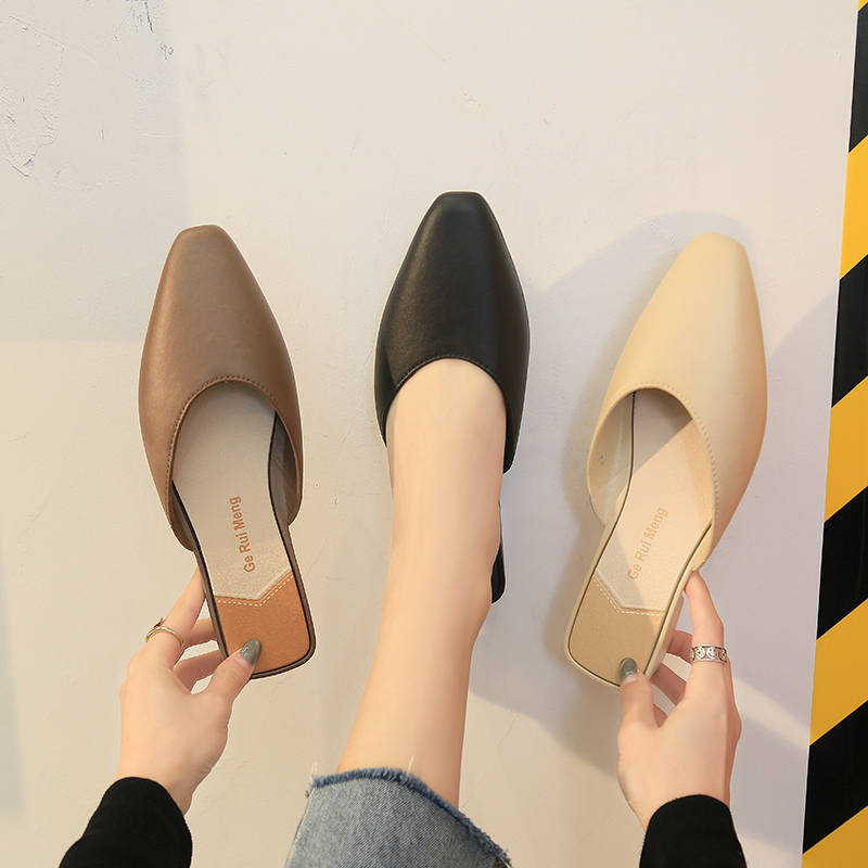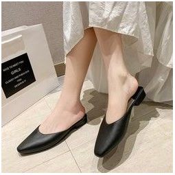 新款时尚尖头粗跟百搭包头半拖鞋女 券后价:¥55.00