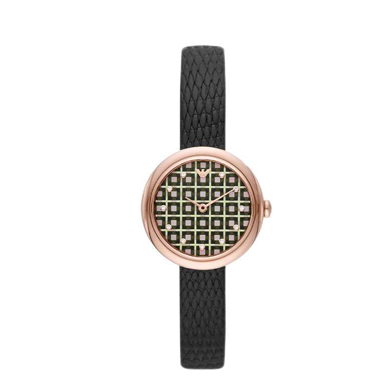 EMPORIO ARMANI 阿玛尼 女士石英手表 AR11435,表镜采用矿物防花玻璃,防刮耐磨。30米生活防水,满足日常生活所需。质感细腻黑色皮革,贴合腕间亲肤舒适。 阅读全文 -
