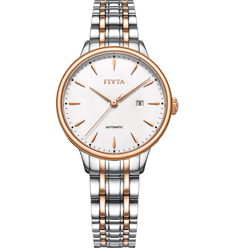 飞亚达(FIYTA)手表女 Hunter系列自动机械日历白盘间金钢带送女友节日礼物