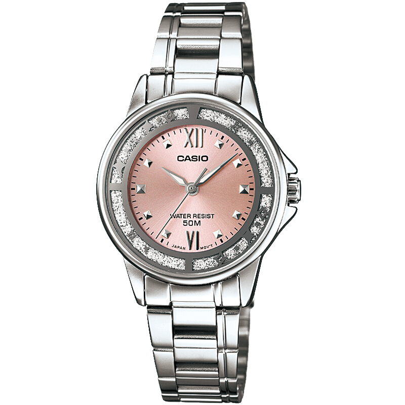 卡西欧(CASIO)女表 全身不锈钢闪耀表圈时尚粉色商务防水石英手表 LTP-1391D-4A