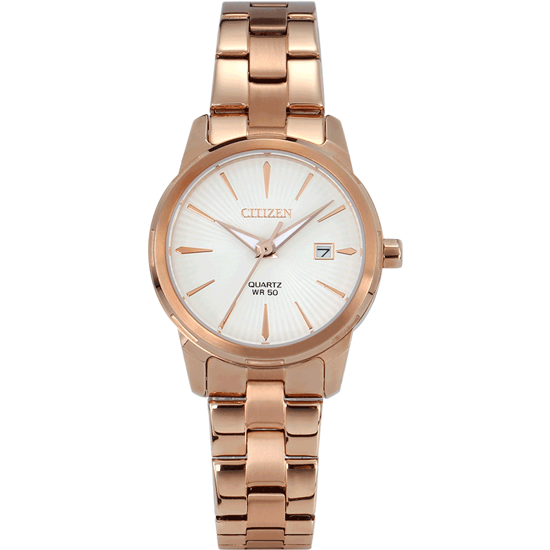 西铁城(CITIZEN) 手表 时尚简约表盘粉金色钢带石英女表EU6073-53A